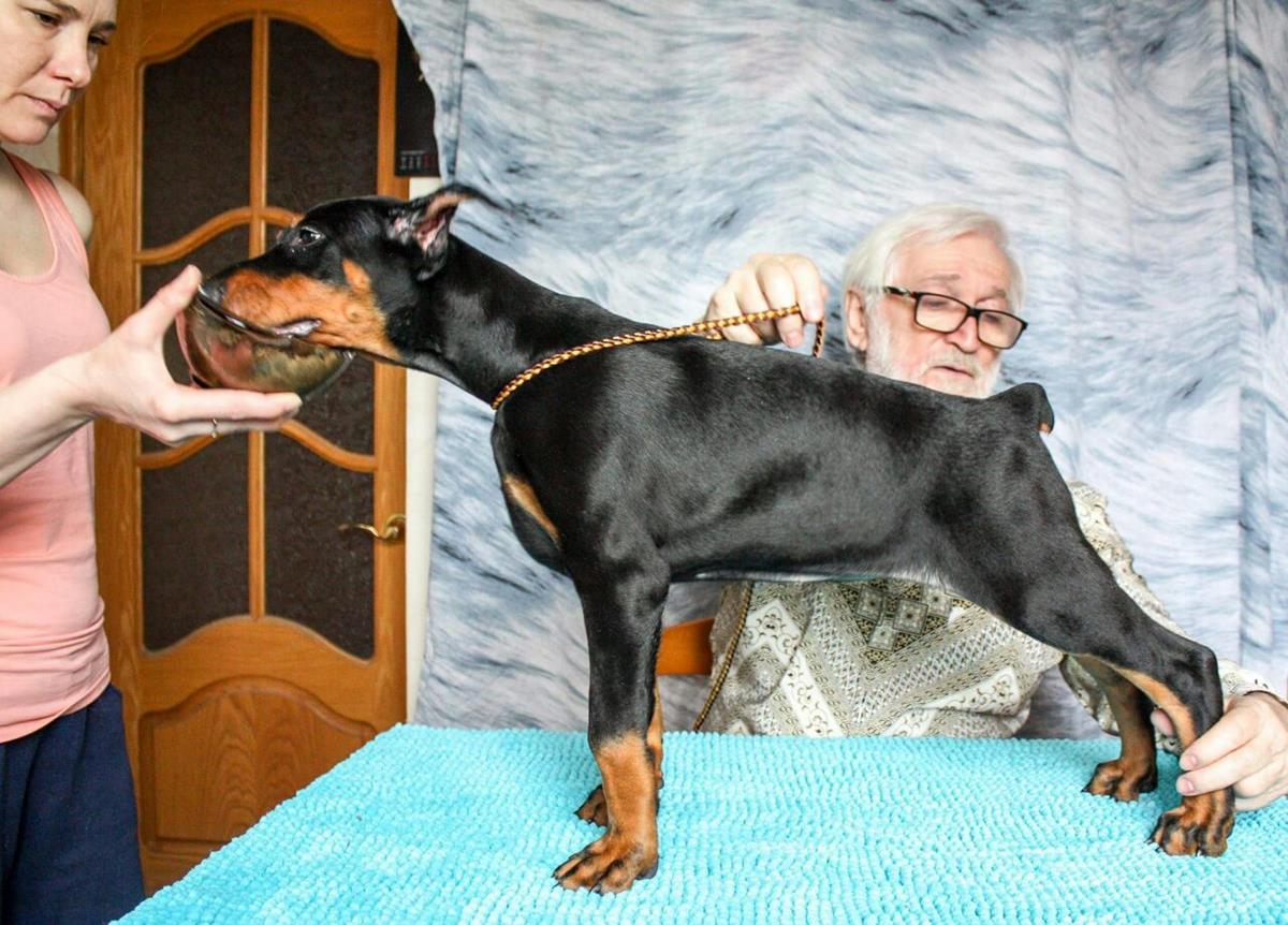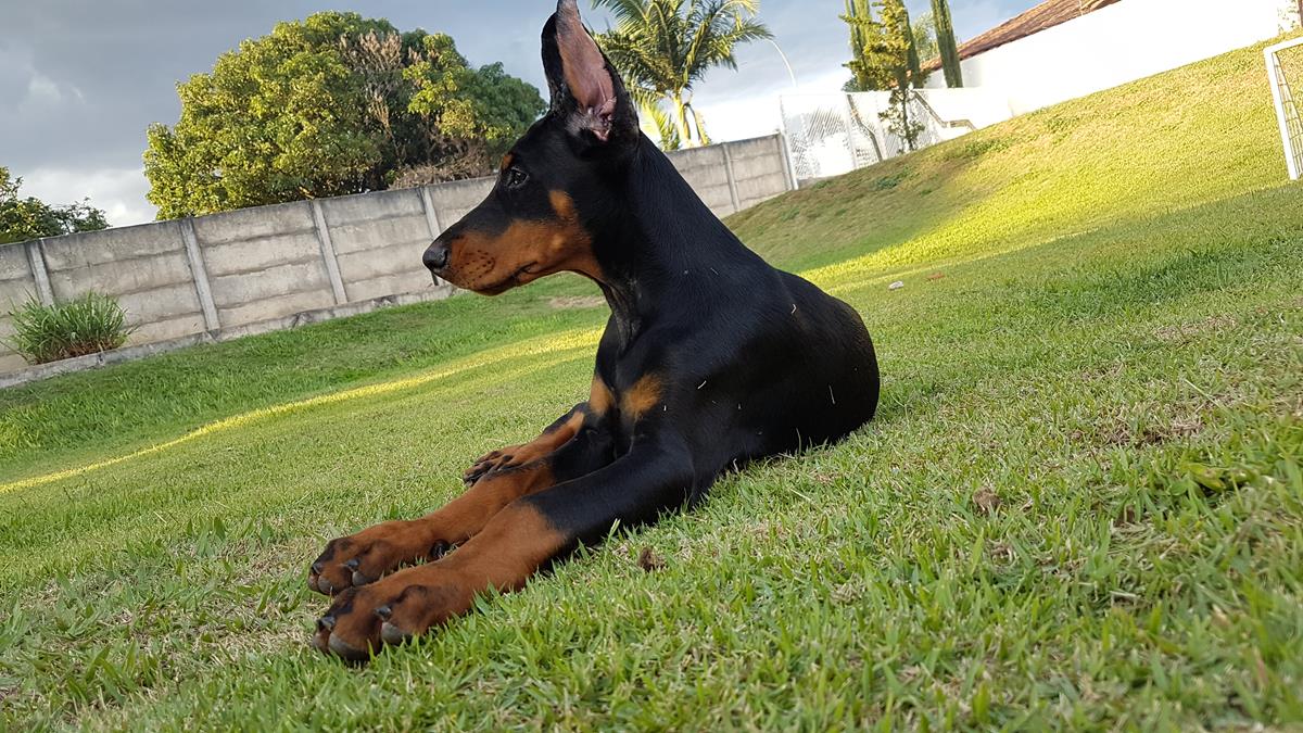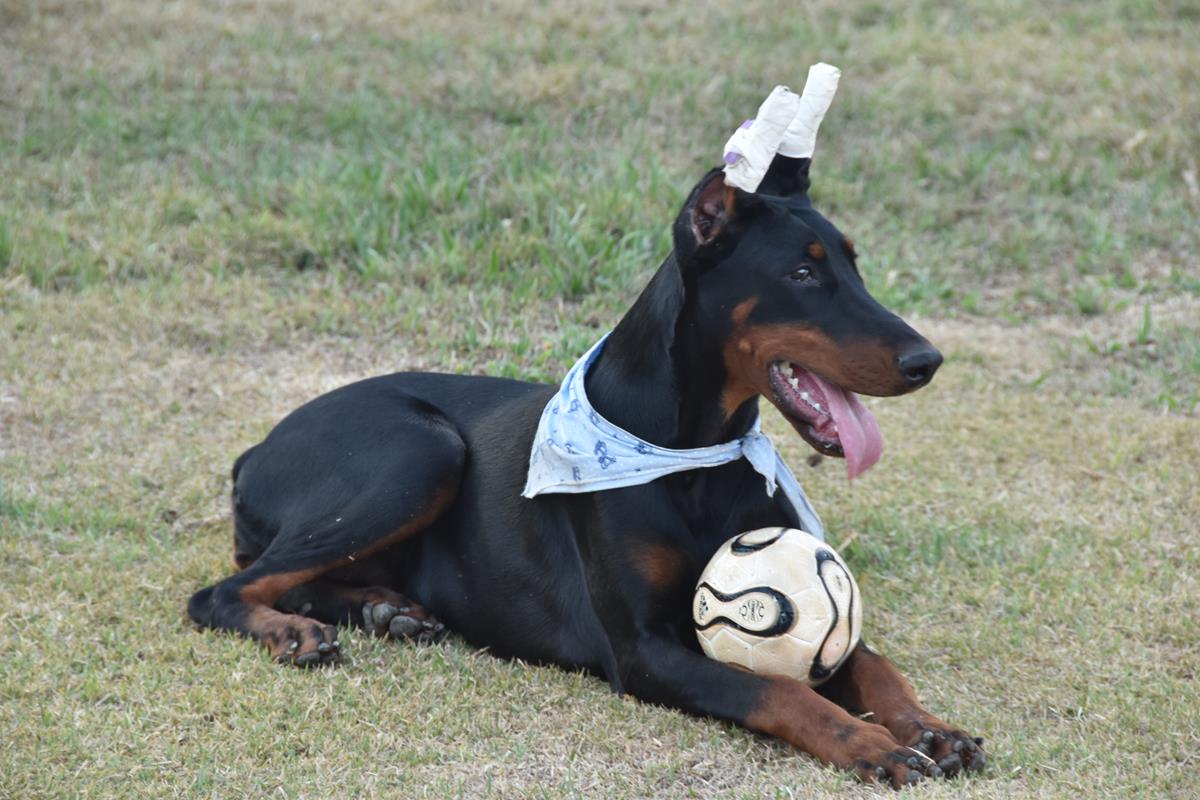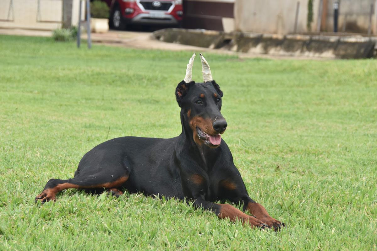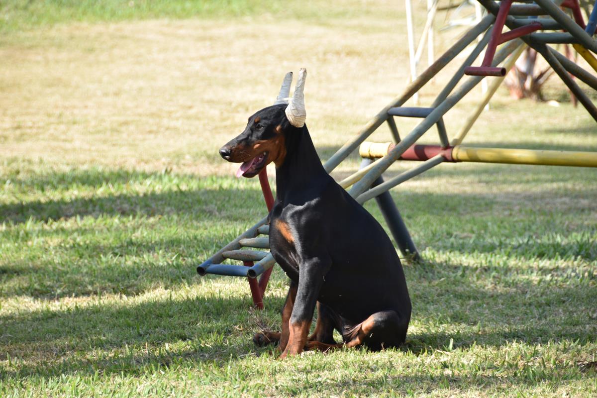 Em 2017 chegou em Brasília nossa segunda dobermann européia. "Zara" Beatriche Iz Zoosfery, uma linda fêmea de pelagem preta, nasceu no dia 07/02/2017 em Moscou e é filha de Rensdorff Lavr e Chio Chio San Iz Zoosfery. Seu pai Rensdorff Lavr sagrou-se vice campeão do mundo na exposição da FCI em Amsterdan no ano de 2018. Nossa querida menina russa, além de carinhosa e esperta, é um verdadeiro furacão e desde cedo demonstrou a predileção por brincar com bolinhas e afins. Uma das minhas intenções sempre foi fazer de Zara uma campeã de conformação, mas seus jarretes não se mostraram adequados para tal finalidade em um primeiro momento. Então passei direto para a segunda etapa que seria desenvolver o lado funcional dela. Por indicação do amigo Sandro Lucio de Oliveira, do canil Von Olivenbaum, Zara começou a treinar com Leandro Macedo para as provas de trabalho e em 25/08/2018, na cidade de Contagem-MG, nossa garota prodígio foi titulada em BH com o juiz Max Macedo. Zara fez 51 de um total de 60 pontos e foi só elogios. As pessoas literalmente "adoraram" nossa pequena, conforme relatado por Leandro. A titulação de Zara em BH, a porta de entrada no "mundo" das provas de trabalho, foi o combustível que faltava para pensarmos em voos mais altos. Após uma semana de folga, Zara estava novamente à rotina de treinos e preparação para o IPO 1. A motivação dela só aumentava e no dia 20/10/2018, na cidade de Assis-SP, Zara foi titulada em IPO 1 com 97 pontos na seção de faro, 70 pontos na seção de obediência e 95 pontos na seção de proteção! No dia 01/06/2019 nossa garota russa foi até Atibaia - 900 km de casa - e mesmo estando no CIO conseguiu sua titulação no IGP 2, fazendo 72 pontos na seção de faro, 91 pontos na seção de obediência e 80 pontos na seção de proteção. Ainda em 2019, nos dias 15 e 16/11, nossa garota prodígio conquistou seu título de IGP 3 na cidade de Goiânia-GO. Zara obteve 95 pontos na seção de faro, 90 pontos na seção de obediência e 75 pontos na seção de proteção. Com esse título nossa Zara termina o ano de 2019 como o único Dobermann do Brasil com título de IGP 3, o nível mais alto do esporte!