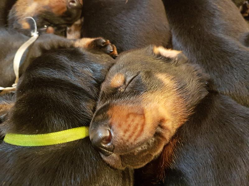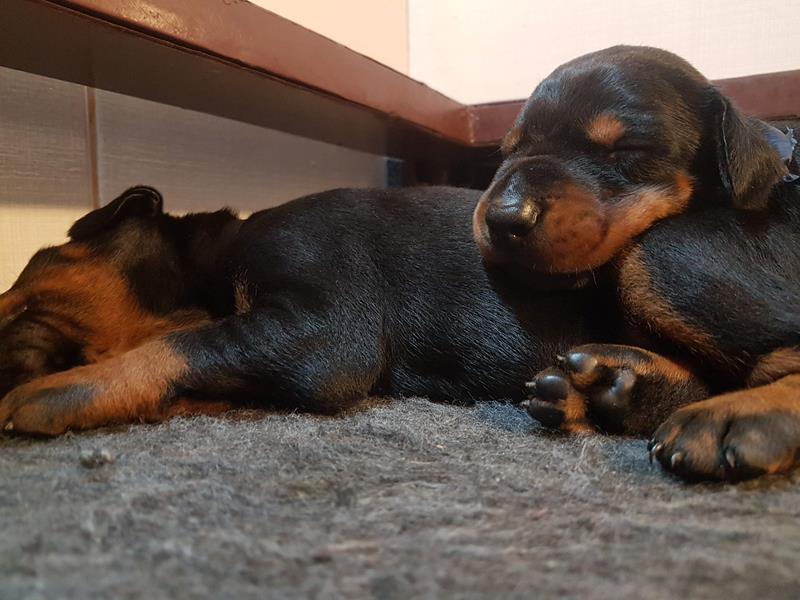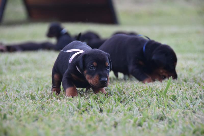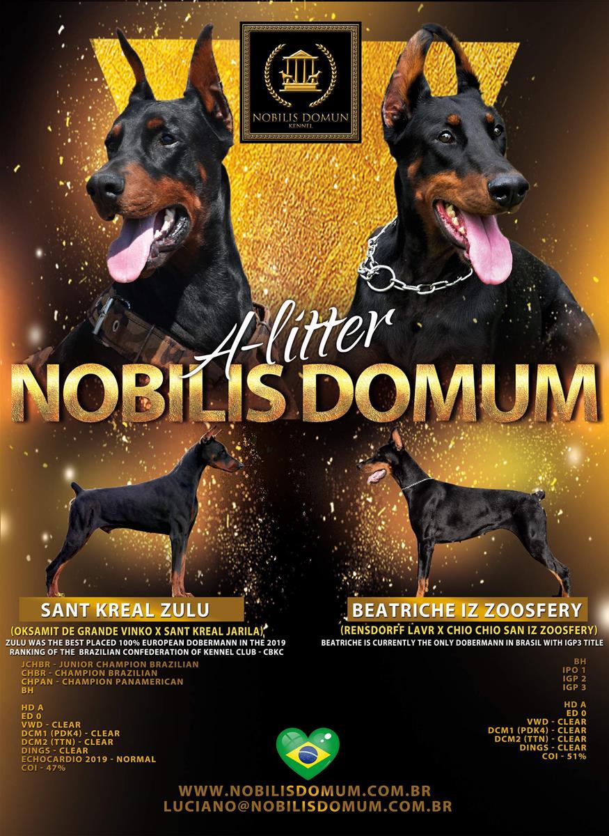 Esse acasalamento reúne o que temos de melhor hoje. Zara é o único dobermann no Brasil atualmente com o título de trabalho IGP3 (o mais alto) e Zulu foi o dobermann linha européia melhor colocado no ranking CBKC de 2019.